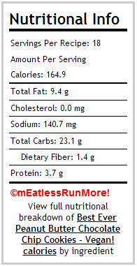 Seriously though, you could easily get 2 dozen cookies out of this batter. I just choose to make monster-sized cookies and then hope to not eat as many. Not that that usually works, haha! These cookies are the reason I run!